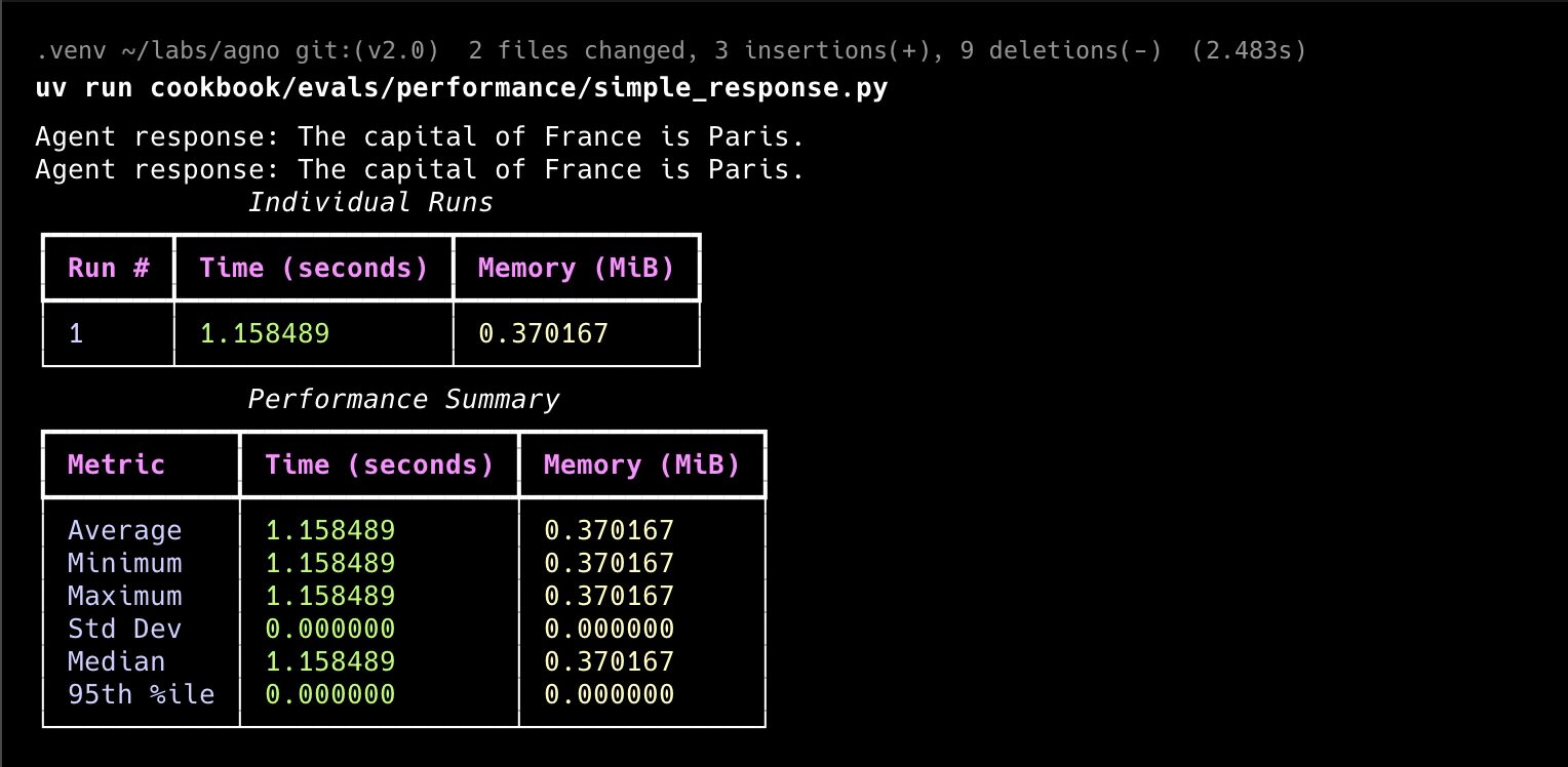 performance_eval = PerformanceEval(func=arun_agent, num_iterations=10)